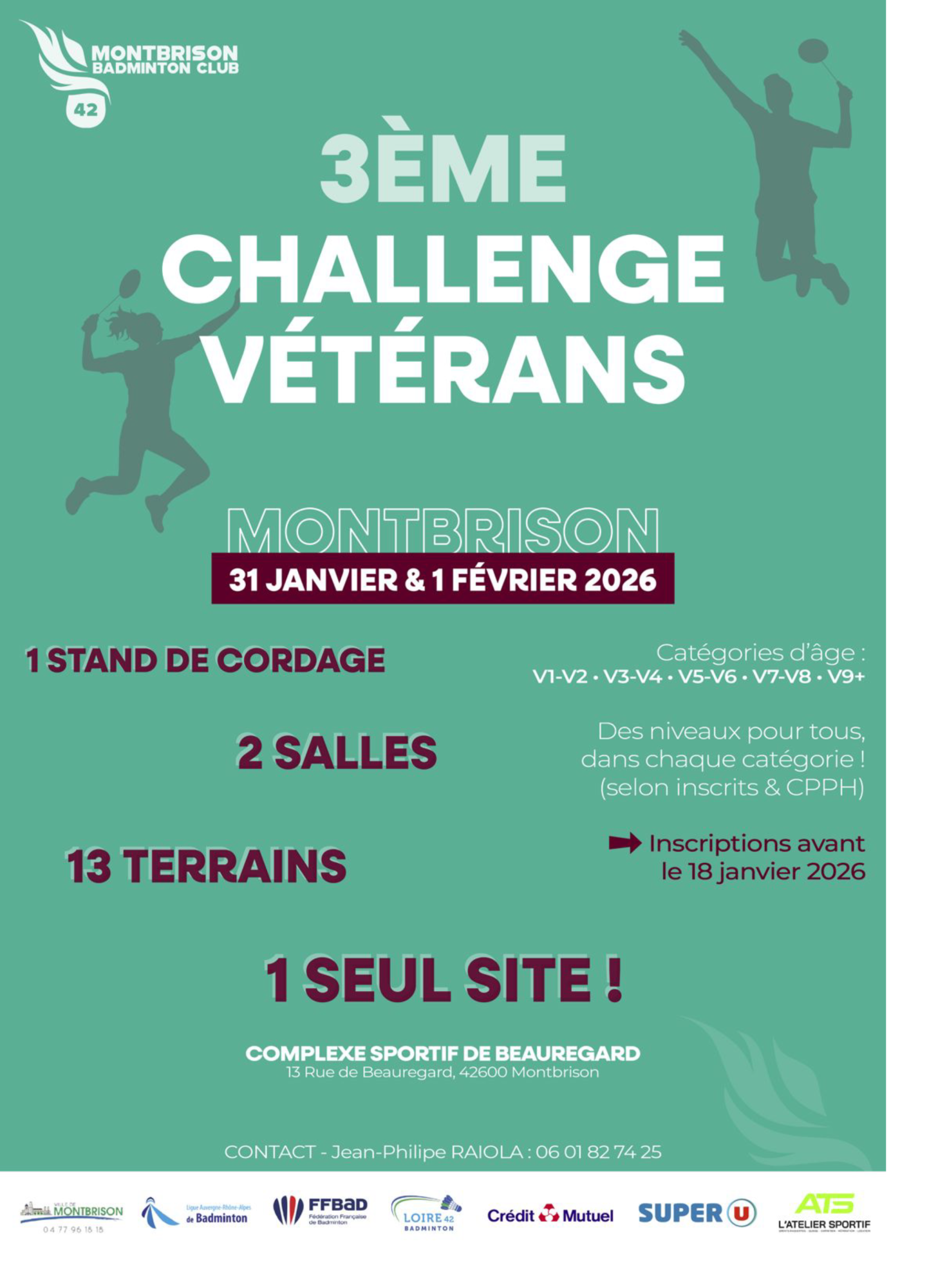 Inscription : https://badnet.fr/tournoi/public?eventid=33460 Plaquette : Plaquette.pdf // RP : RP.pdf Nb terrains : 13 |